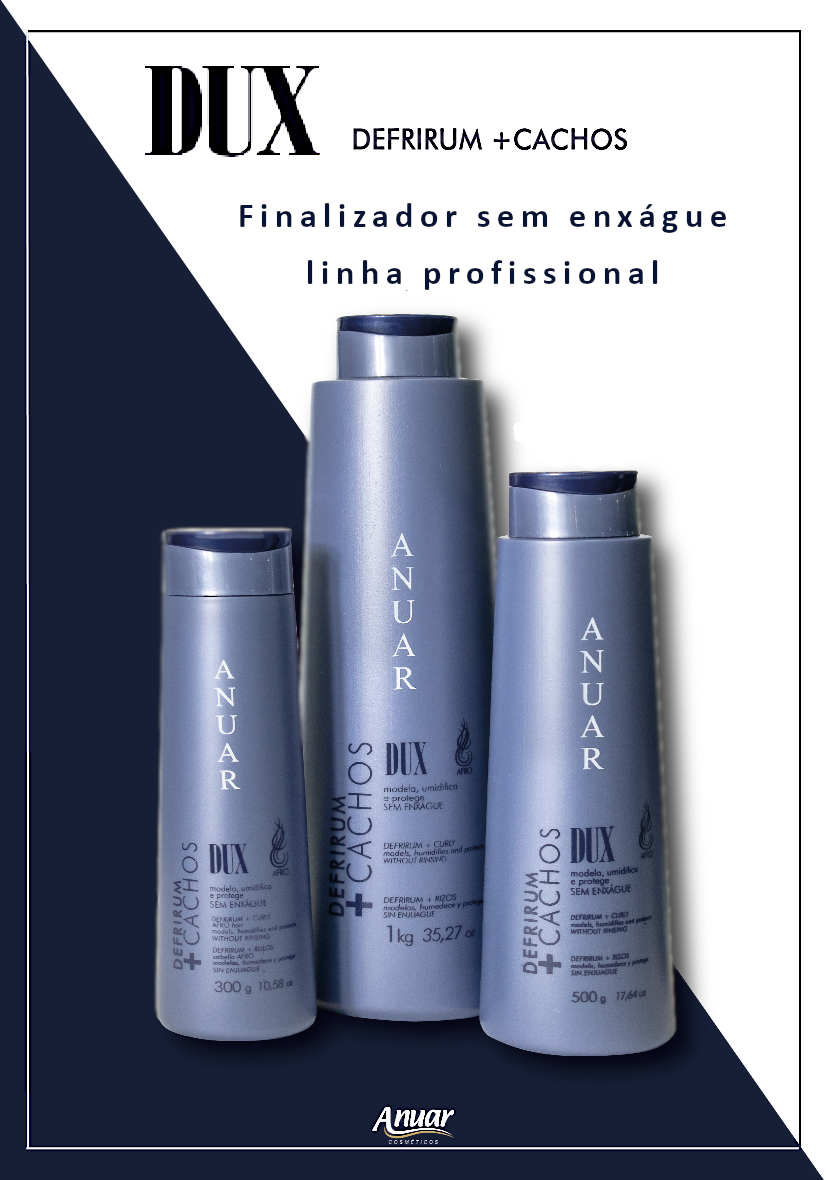 Descubra o segredo para cachos definidos, hidratados e livres de frizz com Defrirum + Cacho DUX da Anuar Cosméticos. Fórmula exclusiva é dermatologicamente testada e livre de sulfatos, garantindo um cuidado suave e eficaz para seus cabelos cacheados, afro e ondulados.